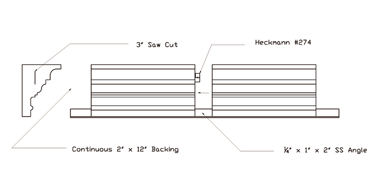 Here is an example of how our cornice can be installed. Installation procedures are job specific, and a recommended installation sheet will be provided.