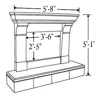 This fireplace surround measures about 3'-11" high and 5'-4" wide.